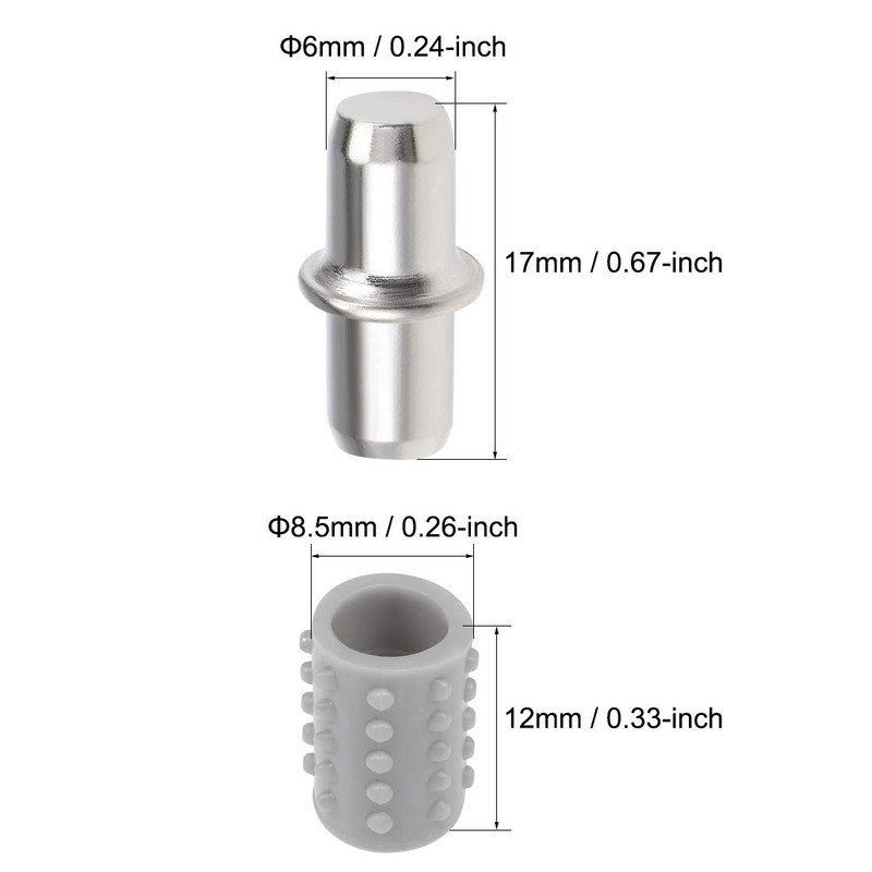 - Easy To Install: Fit for 6mm shelf holes on cabinets. Install them by hands without any tools. Rubber sleeve for more smooth and secure fixing.