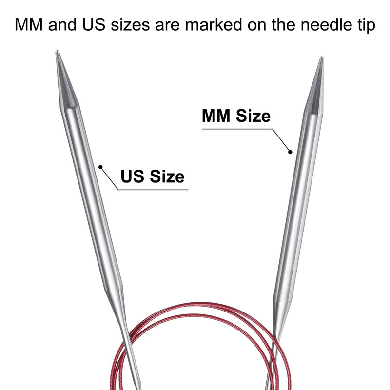 - [Size Marked on needle Tip] - Both MM and US sizes are marked on the needle tips, eliminating the need to search for the required size for specific patterns. The color of the circular needles is bright, making them easy to find.