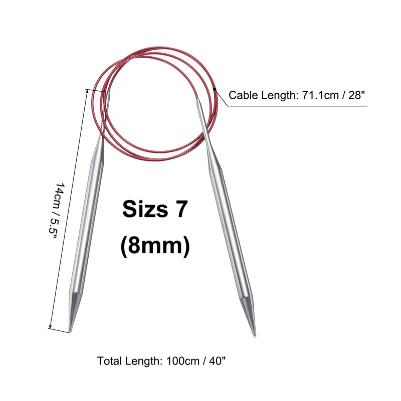 - [Material] - Circular knitting needles are made of stainless steel, which is durable, smooth, lightweight, and comfortable to use. Each needle tip is 5.5" long, the cable is 28" long, total length is 40".