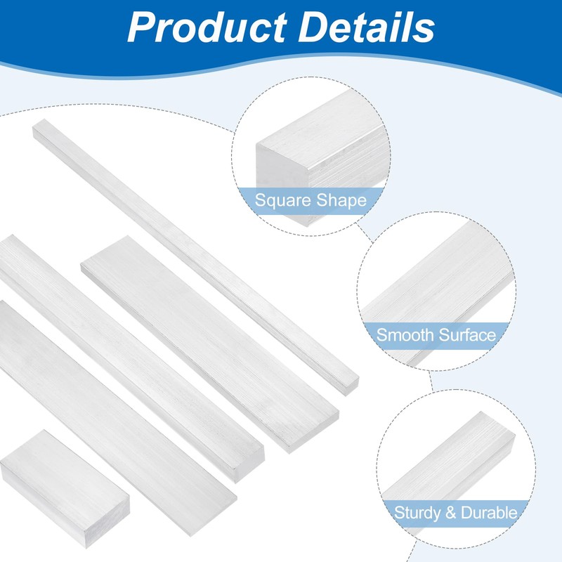 - Design: A square aluminum flat bar provides a clean and polished look. With its precise dimensions and smooth edges, it can be easily integrated into any construction or industrial project.