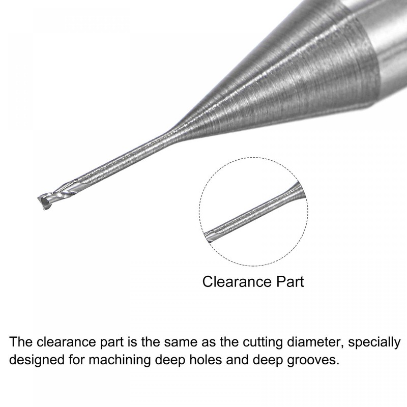 uxcell Square Nose End Mill, 0.5mm Solid Carbide Long Reach CNC Router Bits 2 Flutes Milling Cutter with Extended Neck, 5mm Cutting Length 4mm Shank