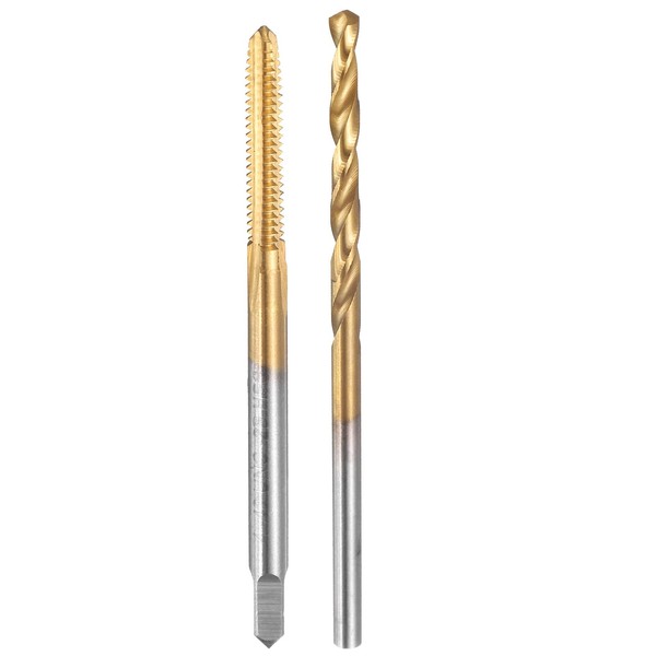 uxcell Tap and Drill Bit Set, 1pcs 4-40 UNC Straight Flute Thread Screw Taps & 1pcs 2.3mm Twist Drill Bits, Titanium Coated HSS-6542 Tapping Threading Tool Kit