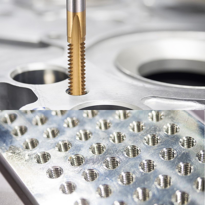 - Tips: Drill holes with a twist drill bit first, then tap with a thread tap. Tapping and drilling angle should be 90 degrees vertical and stable. The higher the hardness, the slower the speed. Fast speed with small torque; slow speed with high torque. Tapping depth should not exceed 1.5 times the diameter of tap.