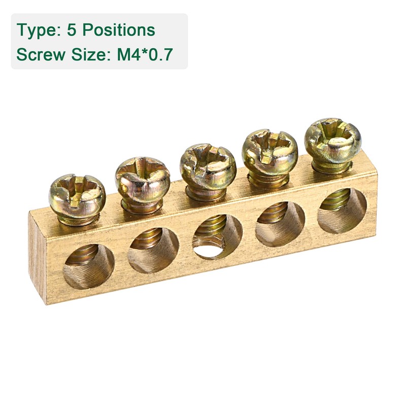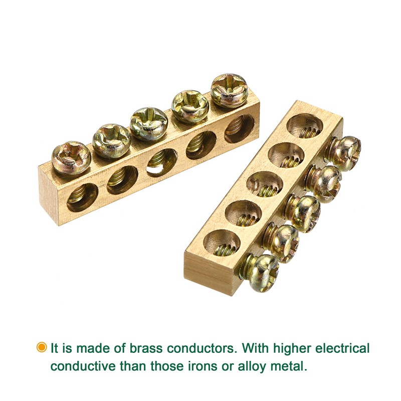 uxcell Terminal Ground Bar, Copper Bar, Ground Terminal Base, Brass, 5 Positions, For Power Distribution, 1.3 x 0.2 x 0.3 inches (33.3 x 5.5 x 7.5 mm), Pack of 3