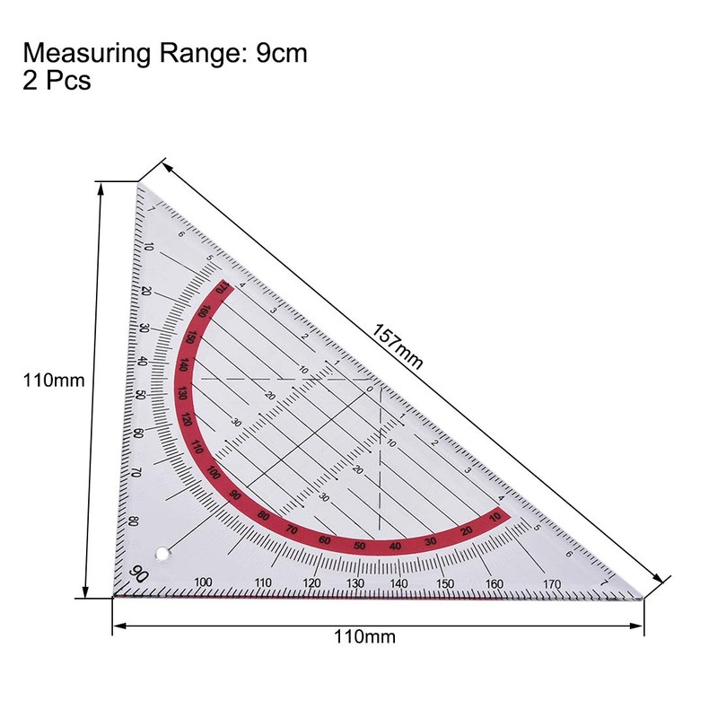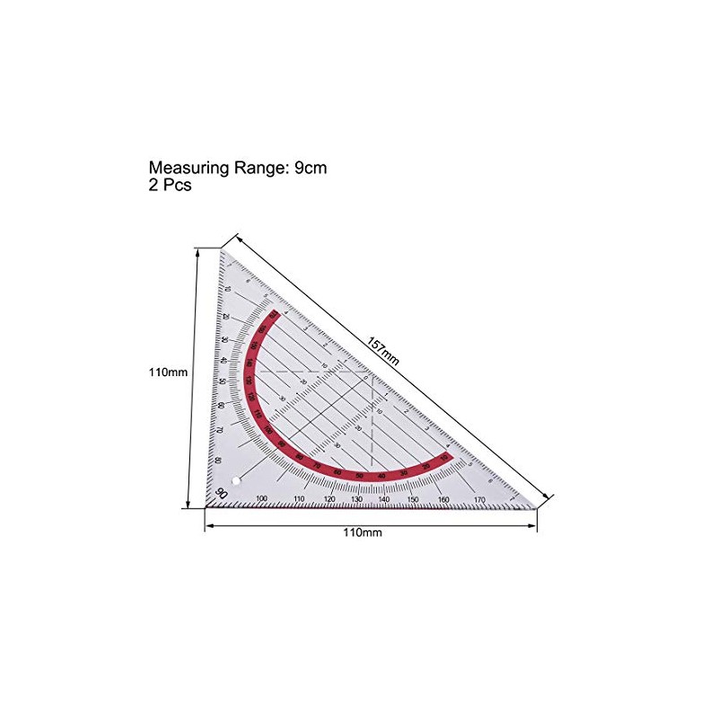 uxcell Triangle Ruler Square Set 90mm 45 Degrees Plastic Stationery Math Geometry 2pcs