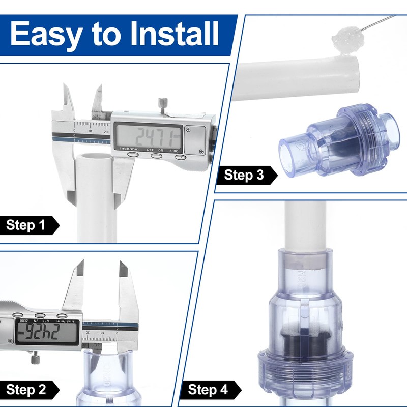 - [Wide Application] - It is widely used in domestic and commercial water pipes, sewage pools, swimming pools, irrigation systems, spraying systems, etc. The valve body is transparent, and the dynamics of the liquid in the pipe can be clearly observed, which is convenient for monitoring the working conditions.