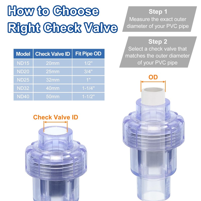 - [Material] - The check valve is made of UPVC plastic, which is thick, strong and durable, heat-resistant and cold-resistant, and not easy to break. It has high hardness, tight structure and corrosion-resistant performance.