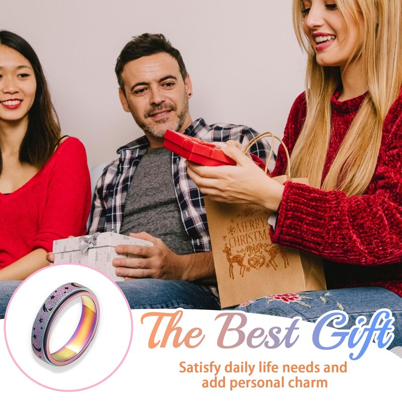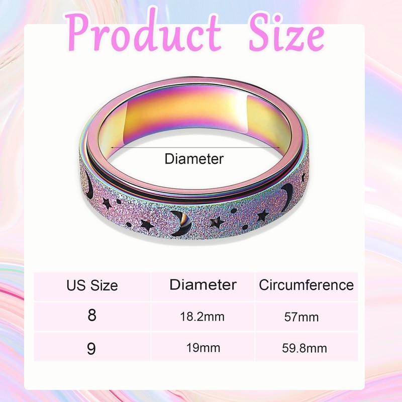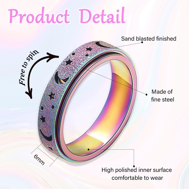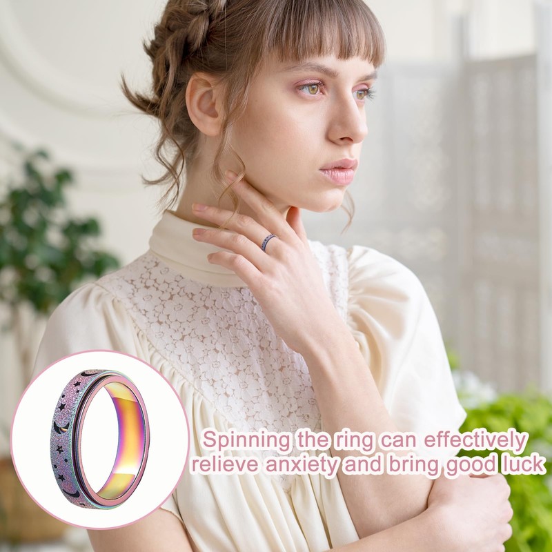 - 【Unique Design】This rotating ring is decorated with exquisite star and moon patterns, combining fashion and practicality. Its unisex design is suitable for women and men, and is the perfect accessory for daily wear or special occasions. The shiny surface adds a touch of elegance. Whether worn alone or stacked, this rotating ring can easily match any outfit.