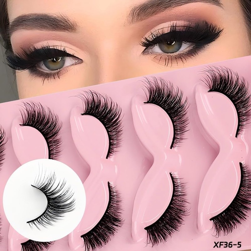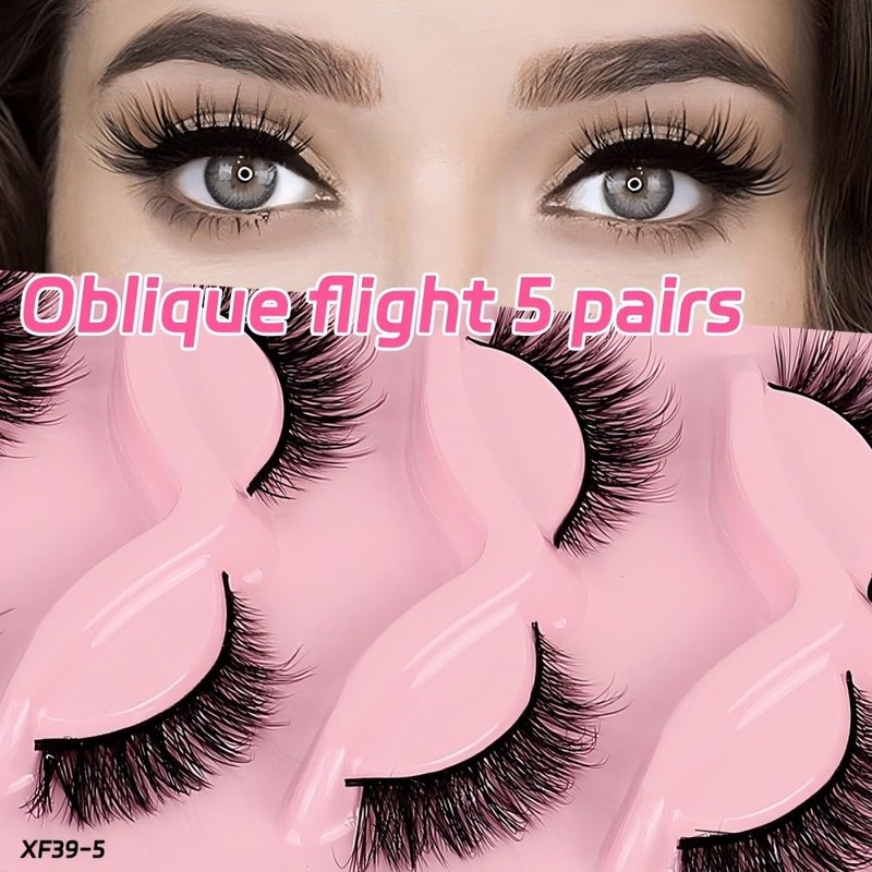 Uytrrsvd 5 Pairs 3D Faux Mink Lashes - Dramatic Cat Eye Wispy Volume with Featherlight Invisible Band, Reusable False Eyelashes Easy to Apply for Day to Night Wear, Parties & Special Events (XF39-5)