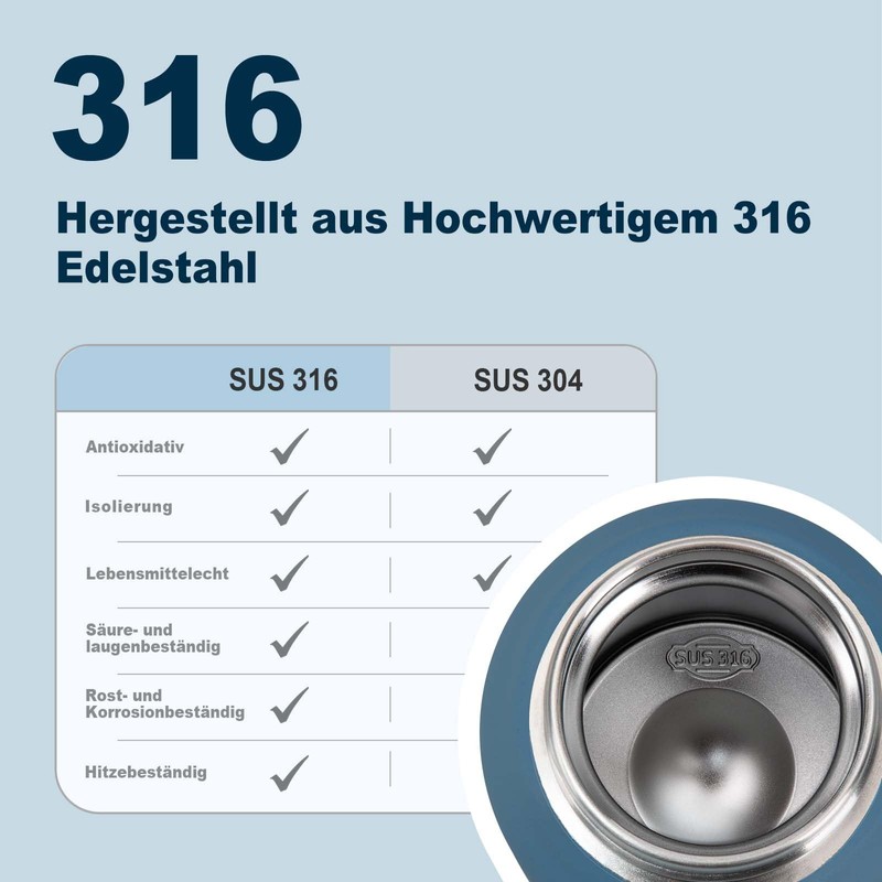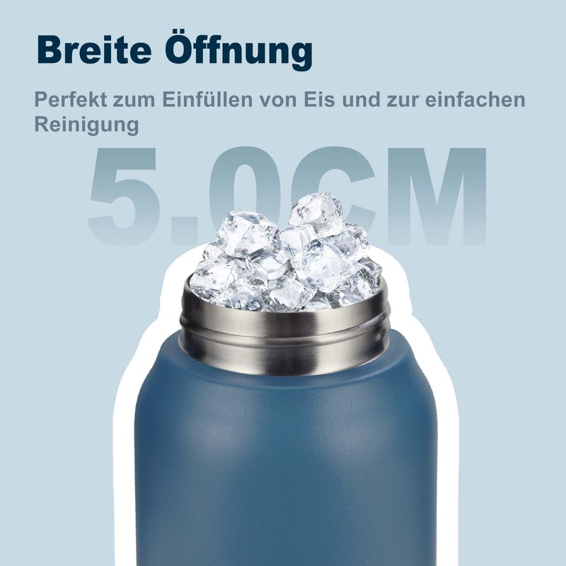 - Easy to carry and clean: the stainless steel bottle is equipped with a carry handle, which allows you to take it anywhere. It fits comfortably in your backpack and is always ready for your next adventure. The large opening allows for easy cleaning and adding ice cubes for cool coffee, tea and drinks on hot days. To prolong the service life, we recommend not to clean the bottle in the dishwasher, but clean by hand