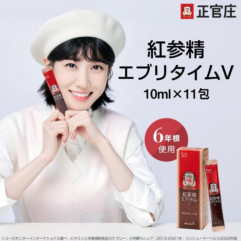正官庄 (ジョンガンジャン) 紅参精エブリタイムV (バリュー)【お試し】紅参(ホンサム) 6年根 高麗人参 濃縮 スティック サプリ 11包 (10ml×11包) 国内正規品