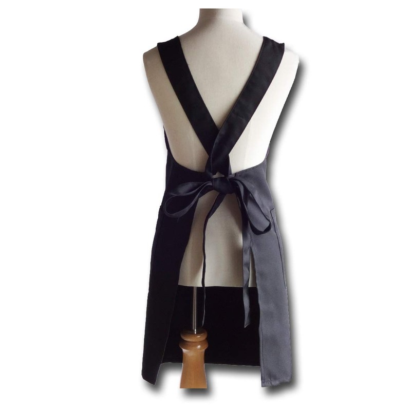 - Elegant style black apron with V-shaped chest Suitable for restaurants and hospitality businesses such as cafes. Pockets on both sides
