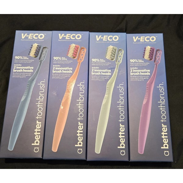 4 Pack V-Eco Toothbrush And Replacement Heads.