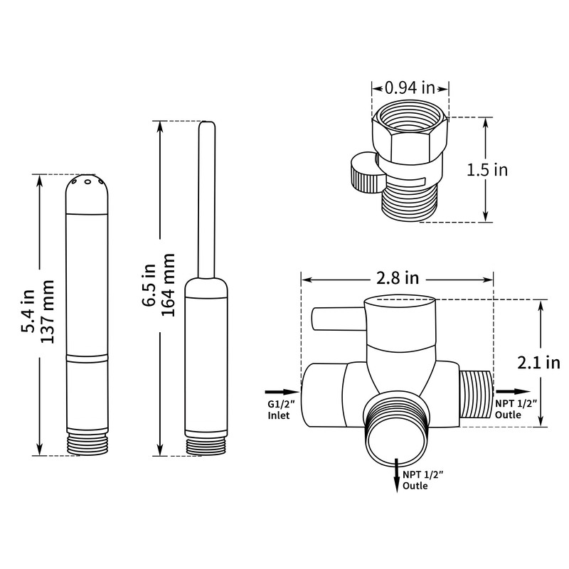 • Metal 3-way Diverter: You can switch easily between the shower head & the enema nozzle. This diverter doesn't have water shut off fuction.