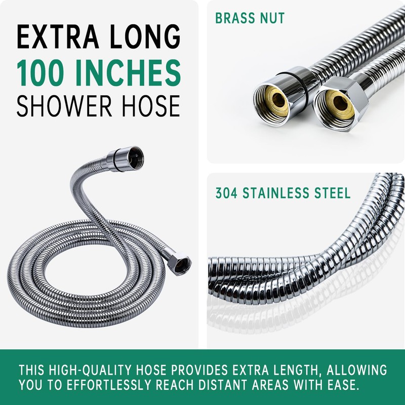 • 8 ft Extra-long Flexible Hose: Made of 304 stainless steel. No rust, Flexible and no winding. More convenient for you to use.