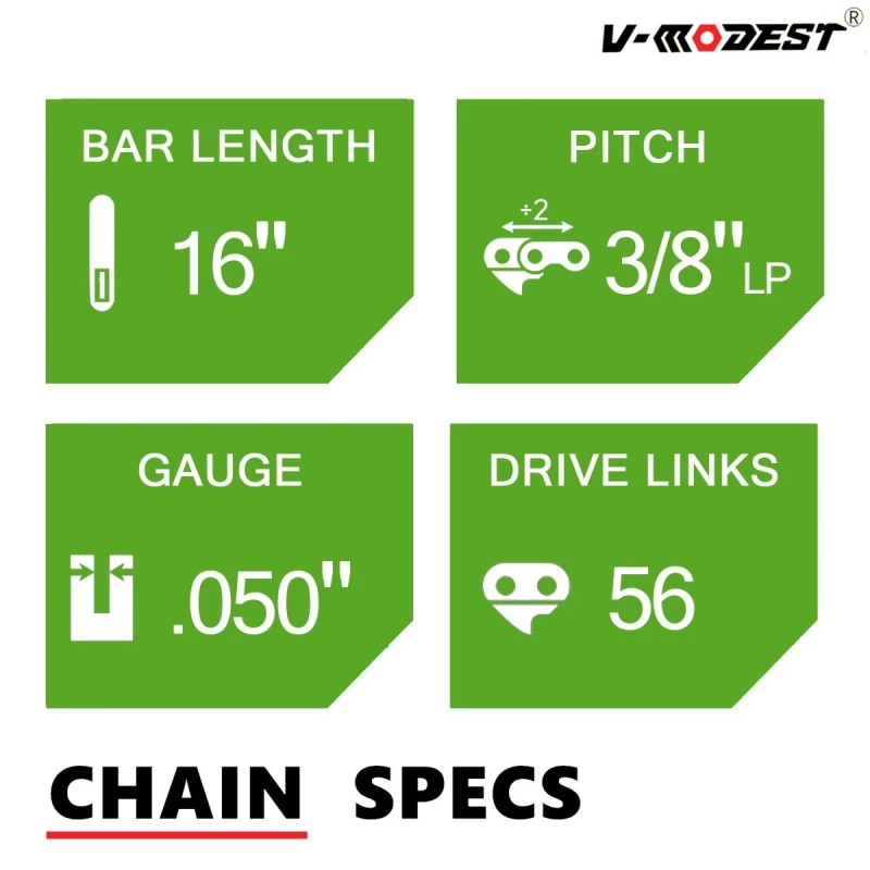 V-MODEST 2PACK 16" Chainsaw Chain For GREENWORKS CS60L252 60V Full Chisel 3/8LP .050 56DL