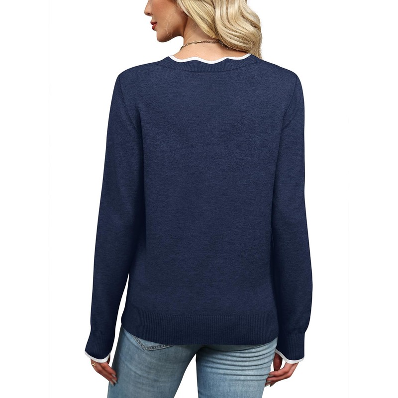 V Neck Sweaters for Women Pullover Cozy Lightweight Sweaters for Women Trendy Fall Knit Sweater Top Navy Blue L