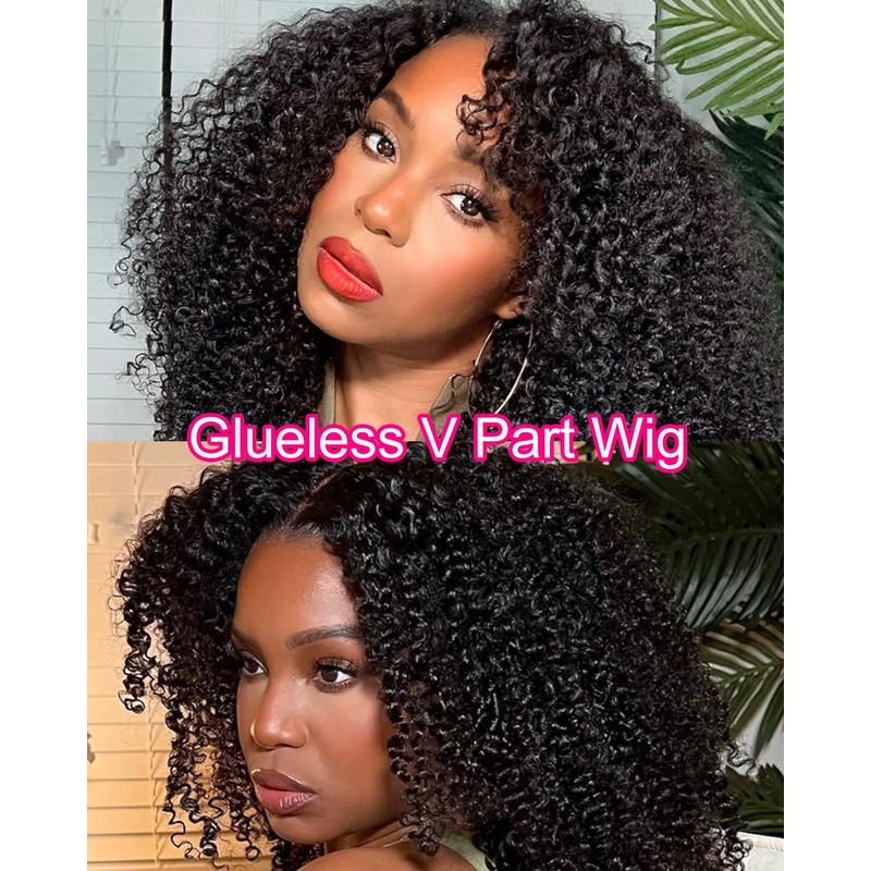 V SHOW Vshow V Part Wig Human Hair No Leave Out 180% Density Upgrade U part Afro Curly Wigs with Clips Glueless Wig Human Hair for Women Beginner Friendly No Lace No Glue 16Inch