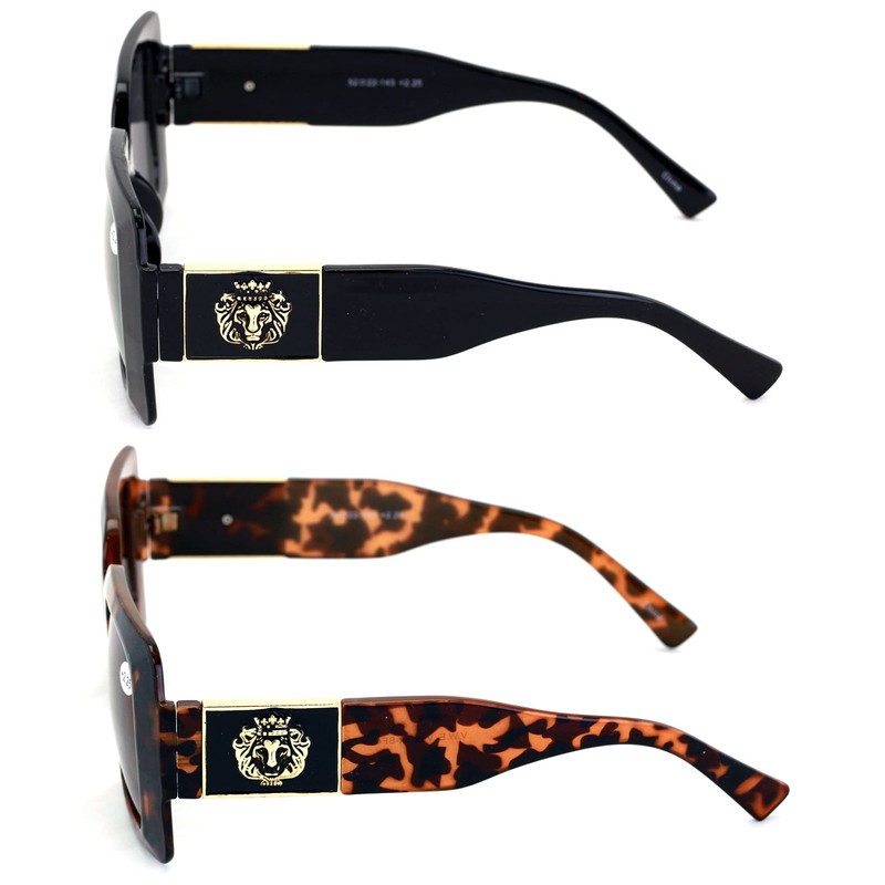 V.W.E. 2 Pairs Oversized Bold Women Bifocal Reading Sunglasses Lion Head 100% UV (1 Black 1 Tortoise, 2.00)