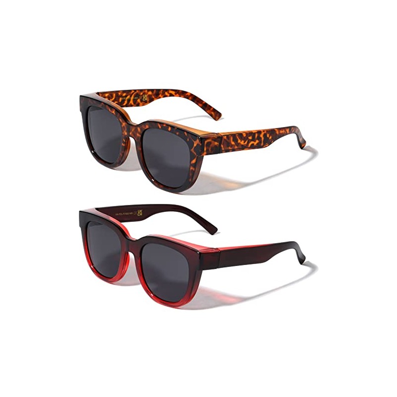 V.W.E. 2 Pairs Women Round Polarized Fit over Sunglasses - Wear Over Prescription Eyeglasses 100% UV Protection (1 Brown Leopard 1 Red)