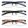 V.W.E. 3 Pairs Half Rim Rectangular Readers With Spring Hinge - Extended Temple Reading Glasses (3 Pairs (Blue/Black/Tortoise), 1.50)
