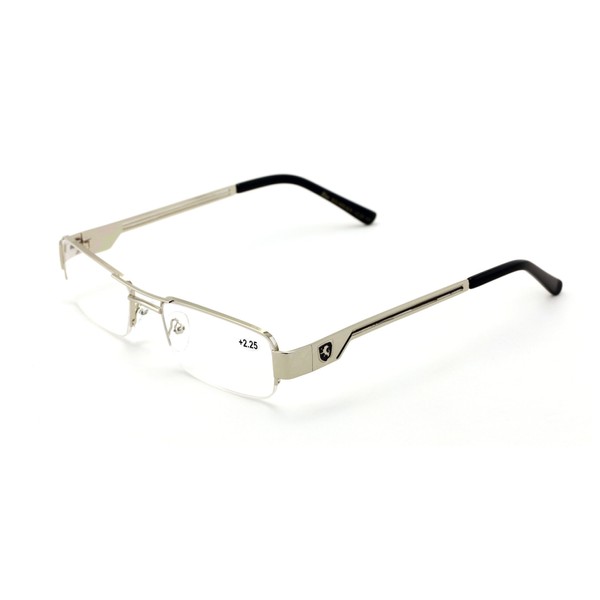 V.W.E. Khan Metal Rectangular Semi-Rimless Rectangle Reading Glasses Reader (Silver/Black, 2.50)