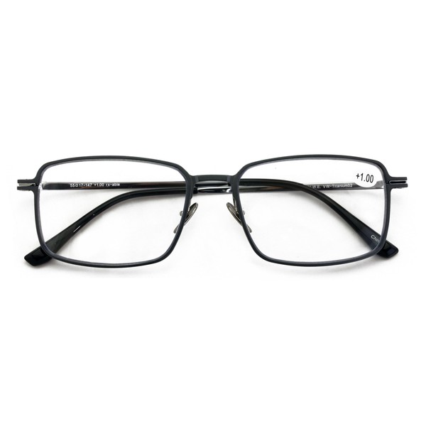 V.W.E. Men Aluminum Optical Frame Wide Fitment Reading Glasses with Titanium Temple Rectangular 144MM Ti02 (Matte Black/Black, 0.00, x)