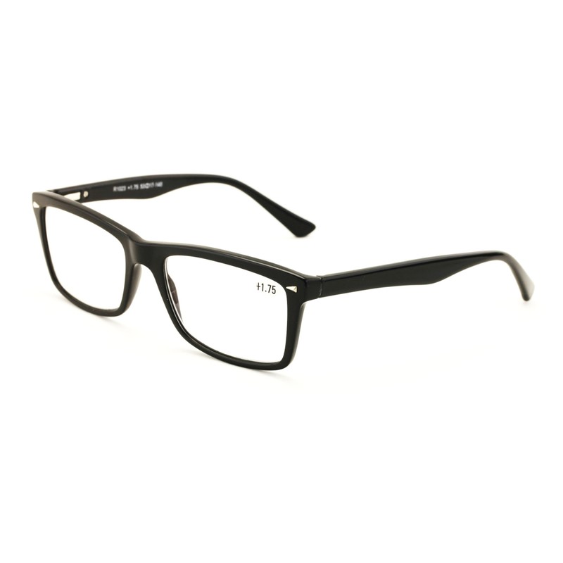 V.W.E. Men Gloss Black Rectangle Rectangular Reading Glasses Wide fitment. (Black, 2.50)