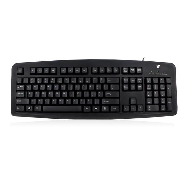 V7 Standard Full-Size Space Saving Spill Resistant USB Keyboard for Windows Desktop PC (KC0D1-5N6) - Black