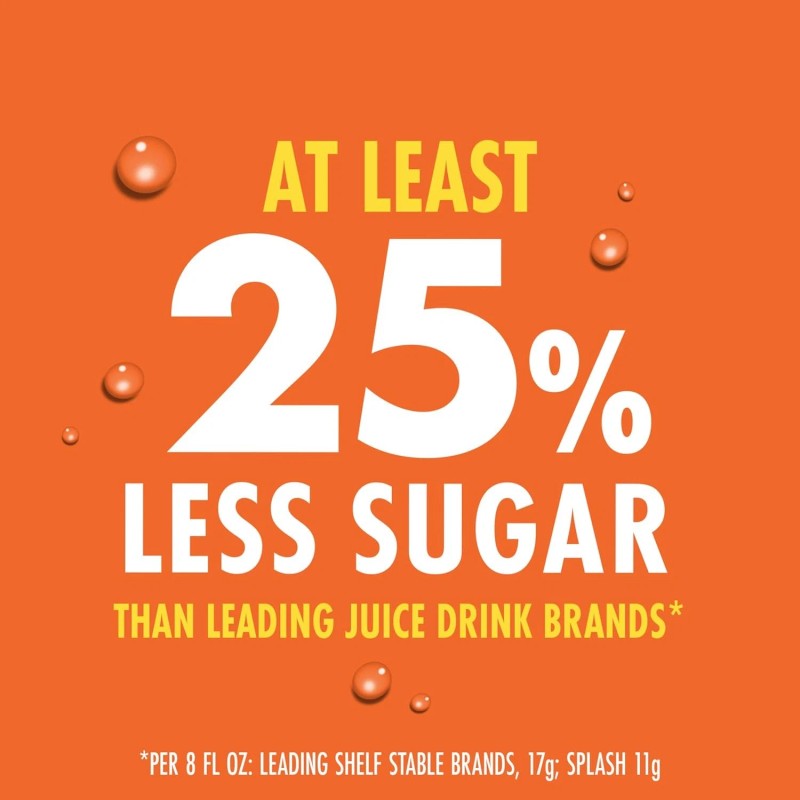 Image of V8 Splash, it has 25% less sugar then leading juice drink brands, per 8oz fl