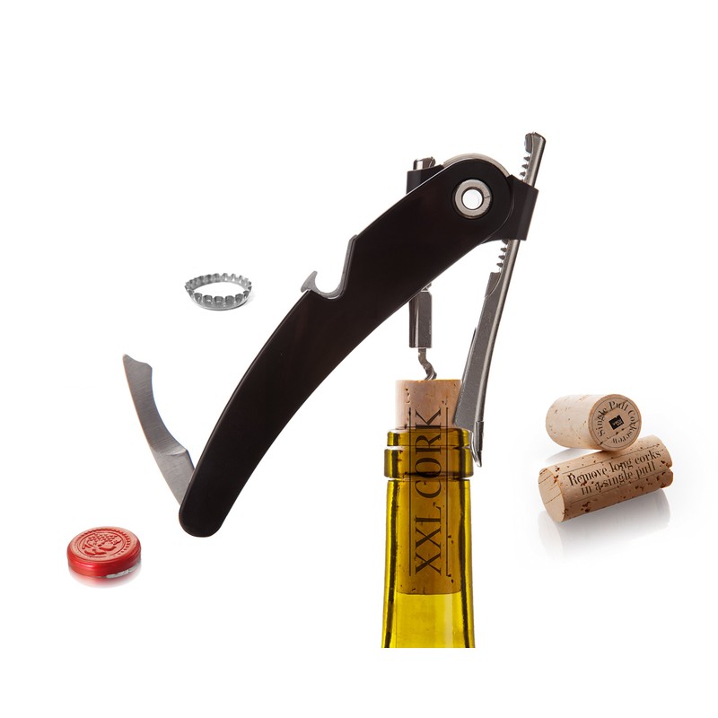 - Also contains a highly efficient foil cutter and crown-cap bottle opener