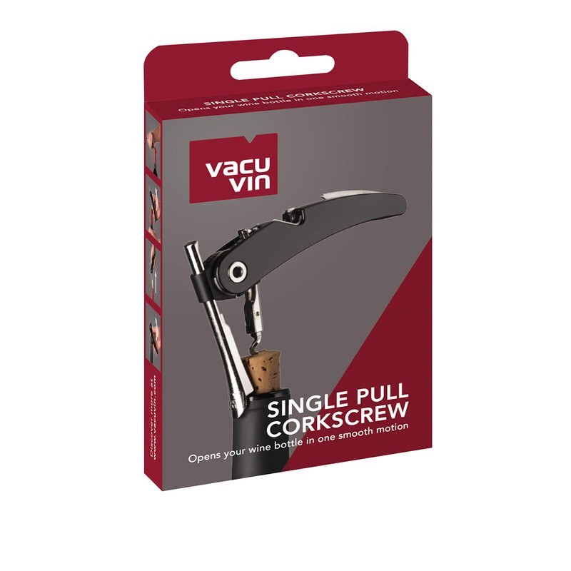 Vacu Vin Single Pull Corkscrew with Foil Cutter and Bottle Opener - Black