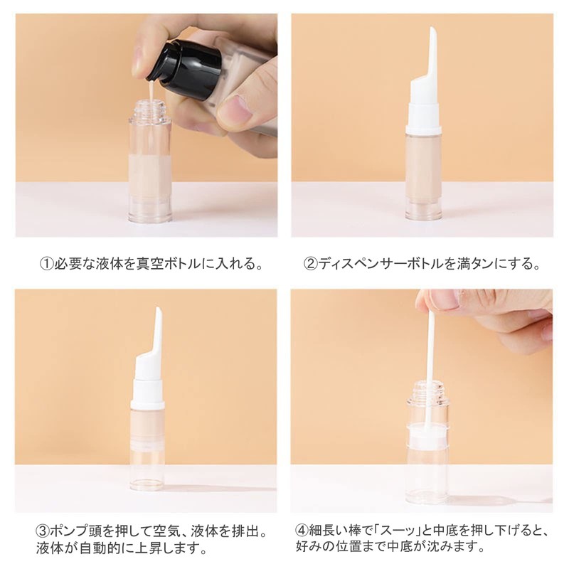 - [Easy to Use]: Can store cream or liquid cosmetics. Fill the liquid makeup you want to carry, press the pump head and apply the liquid to the desired area. Easy to fill and refill empty airless pump bottles, travel friendly, convenient and reusable