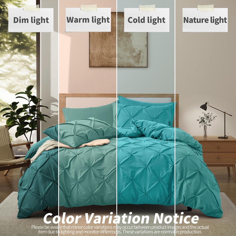 VACVELT 5 Piece Pinch Pleated Duvet Cover California King Size Set, Teal Pintuck Duvet Cover with Zipper & 8 Ties, Soft Microfiber Duvet Cover + 2 Pillow Shams + 2 Pillowcases, No Comforter