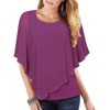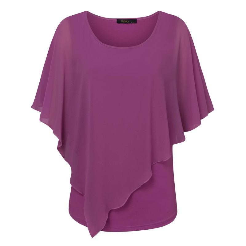 Vafoly Women's Chiffon Loose Batwing Blouse with Short Flutter Sleeves Lightweight Flowing Blouse Crew Neck Double Layer Poncho Tunics, Purple
