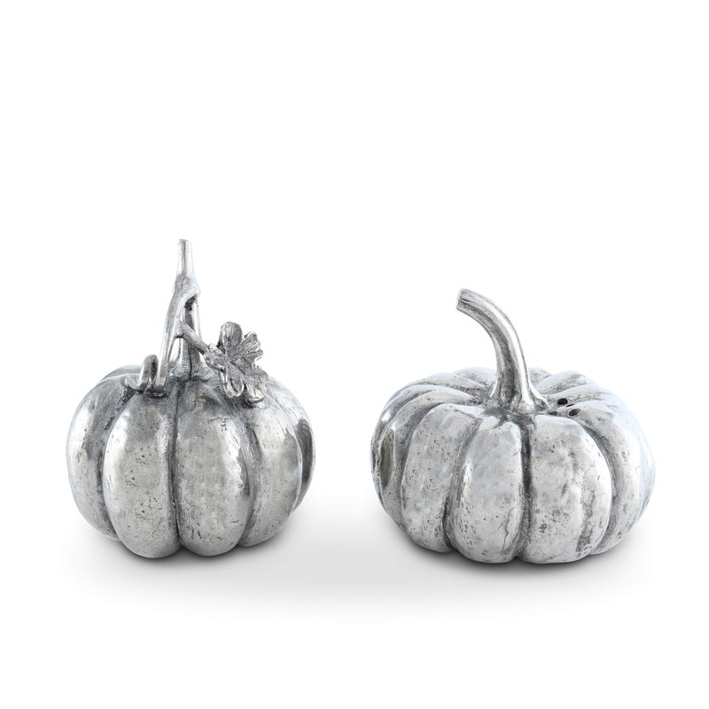 - Our harvest inspired pewter shakers make a festive addition to the seasonal table Hand cast, metal and pumpkins with a lovely fall harvest motif