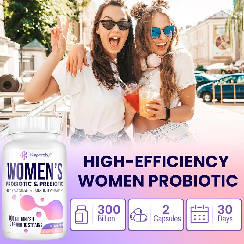 Our blend of probiotics and prebiotics is carefully selected to work together for digestive, immune, vaginal, and urinary tract health benefits. Keptrohy Women's Probiotic comes in 60 capsules, with a recommended dosage of 2 capsules a day for 30 days, providing comprehensive whole-body health support.