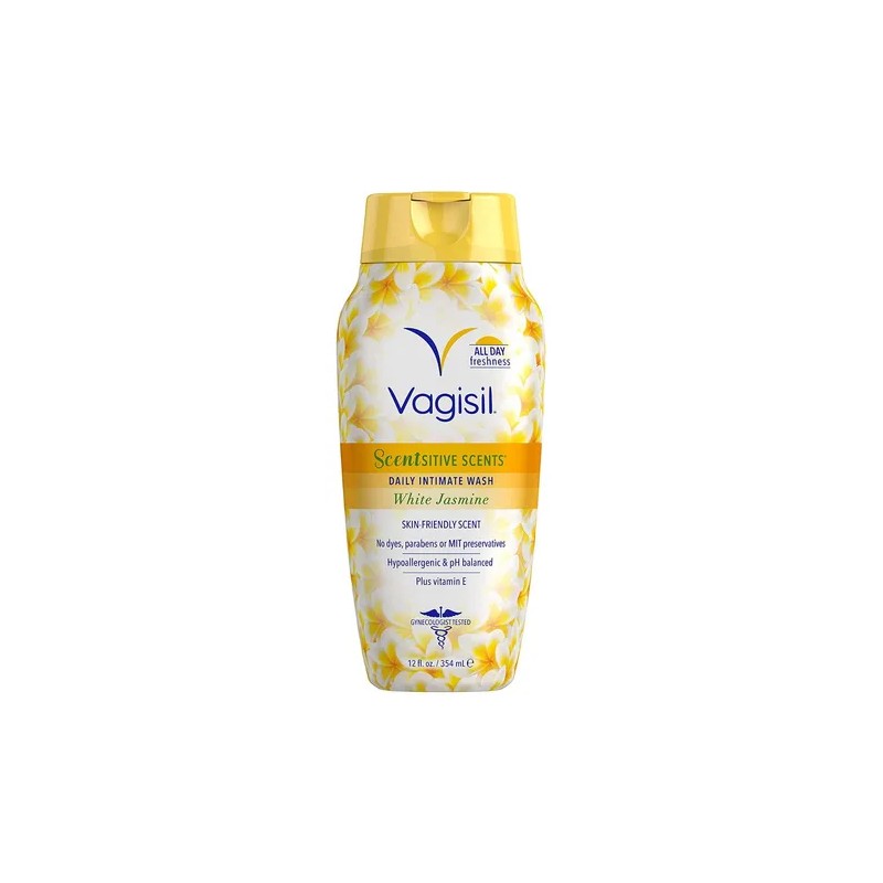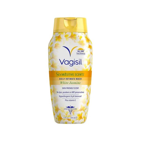 Incluye 1 botella (12 onzas líquidas) de lavado íntimo diario Vagisil White Jasmine Scentsitive Scents.
