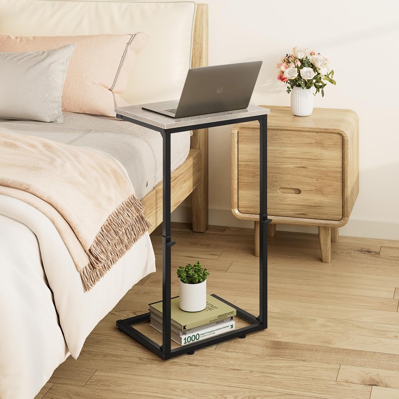 - 【Fit Small Spaces】The C shaped side table can easily fit gaps between couches or tight spots beside the bed without taking up much space. The compact C-shaped design makes it an ideal small side table for small spaces. Besides, the lightweight sofa side table can quickly move to any corners you desire