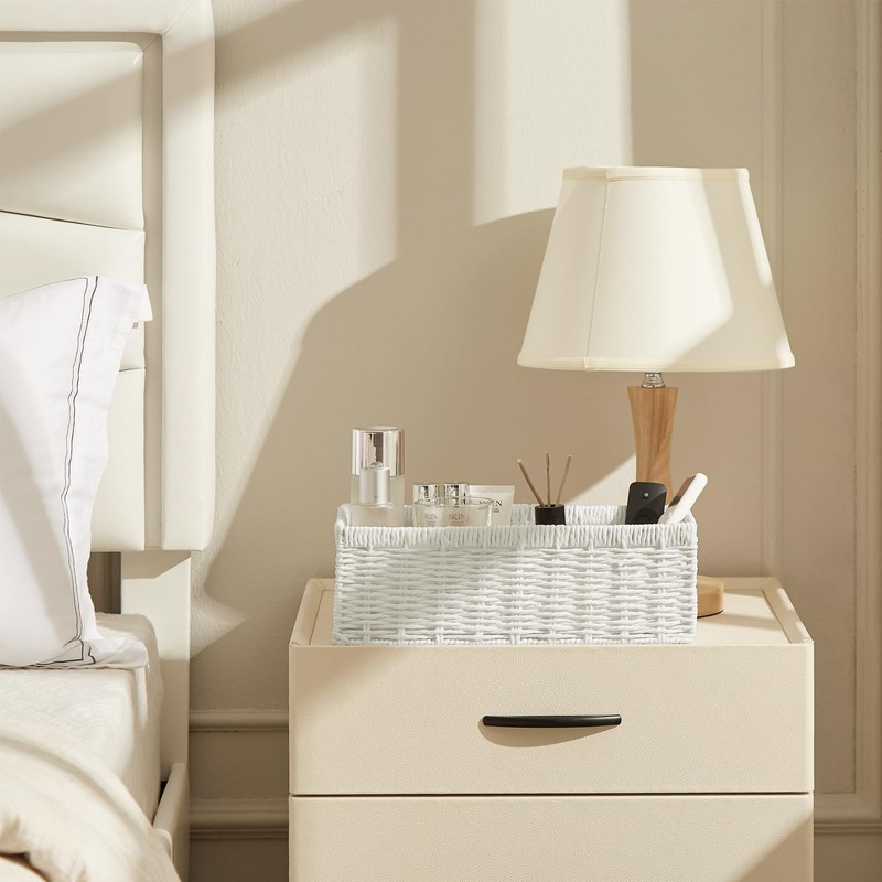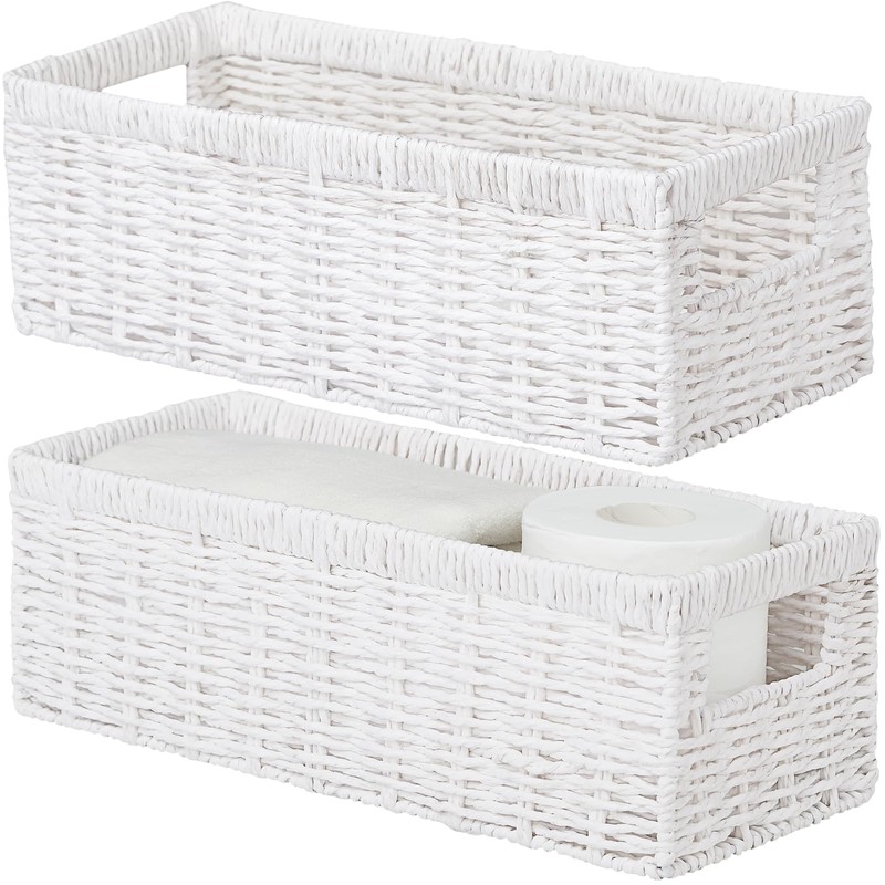 Vagusicc Wicker Storage Basket, Paper Rope Wicker Baskets with Handles, Toilet Paper Basket for Toilet Tank Top, Small Wicker Baskets for Organizing Shelves, 2-Pack, White