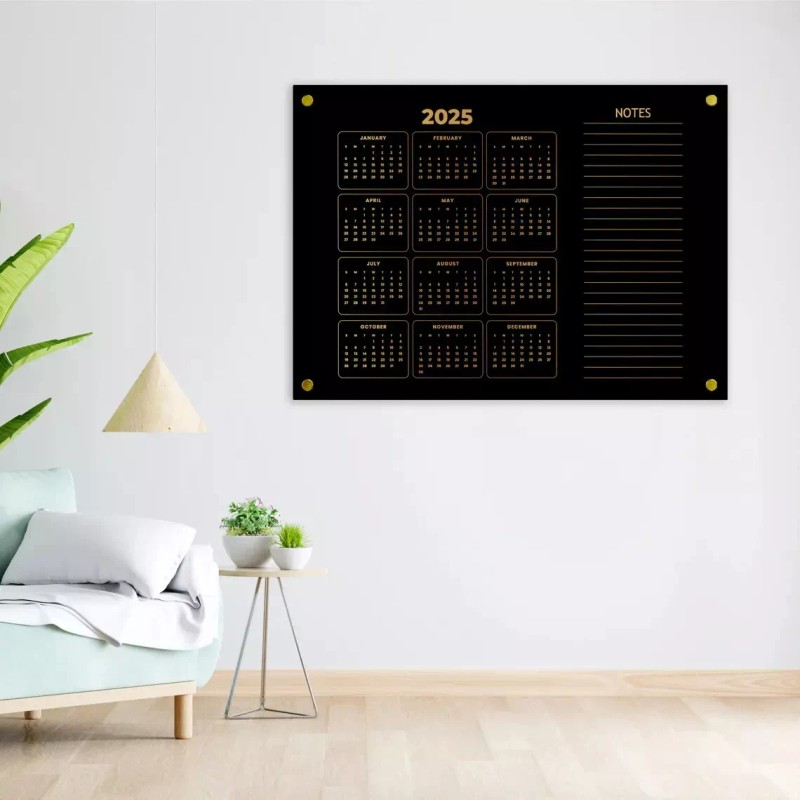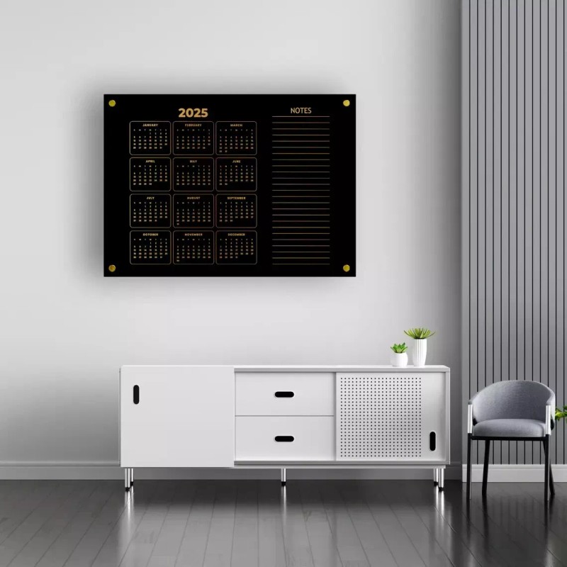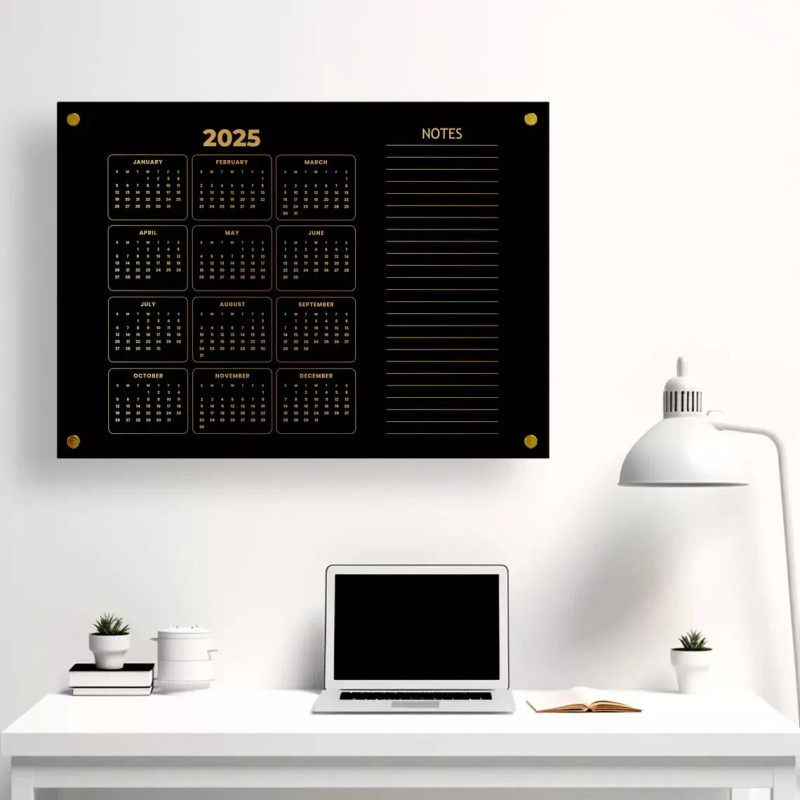 🎯 Our wall calendars are crafted from high-quality clear acrylic with designs printed on the back. Choose from text colors: Gold, Black, Silver, or White.