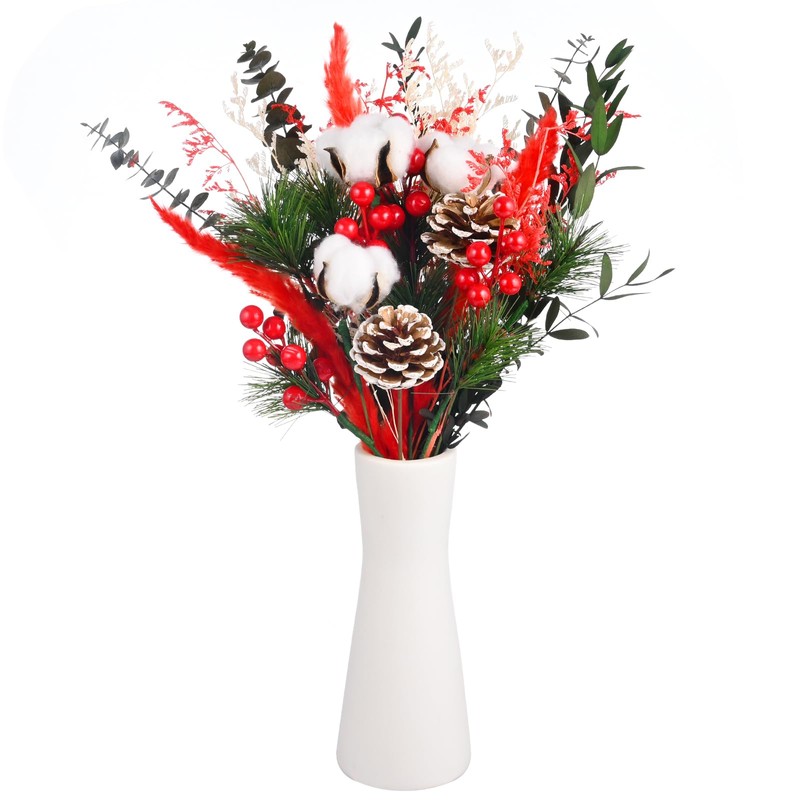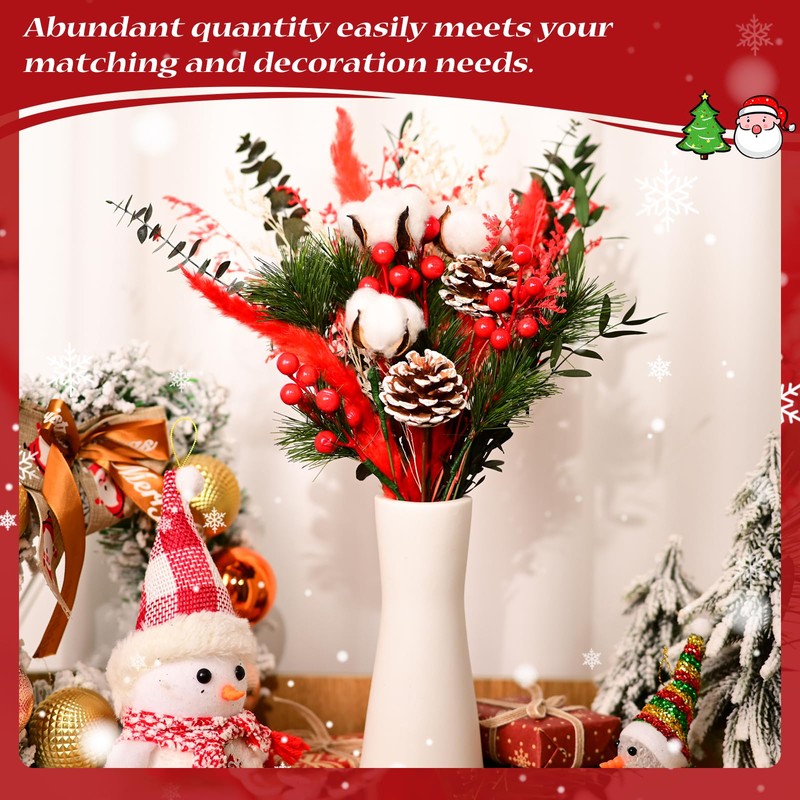 VAIPI 34 Pcs Christmas Dried Flowers Bouquets Christmas Decorations Dry Flower with Artificial Red Berry Stems Pine Cones Pine Branches Eucalyptus for Xmas Vase Floral Arrangements Home Table Decor