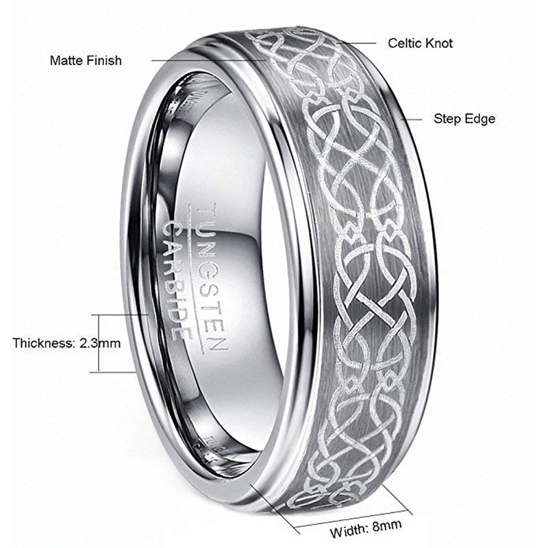 VAKKI 8mm Celtic Knot Tungsten Carbide Ring Matte Center Polished Step Edges ...