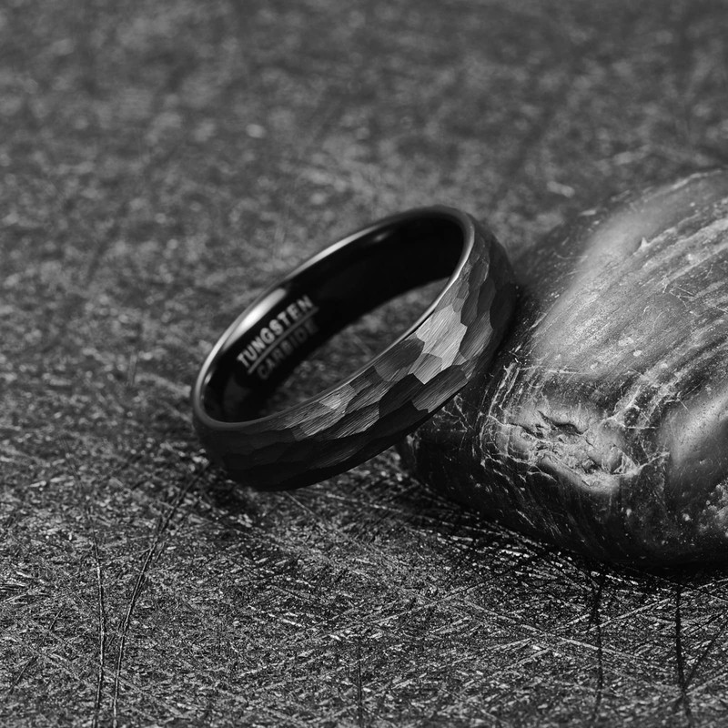 - High quality: hammered ring black made of tungsten carbide, scratch-resistant, chip resistant and strong and fits comfortably on the finger.