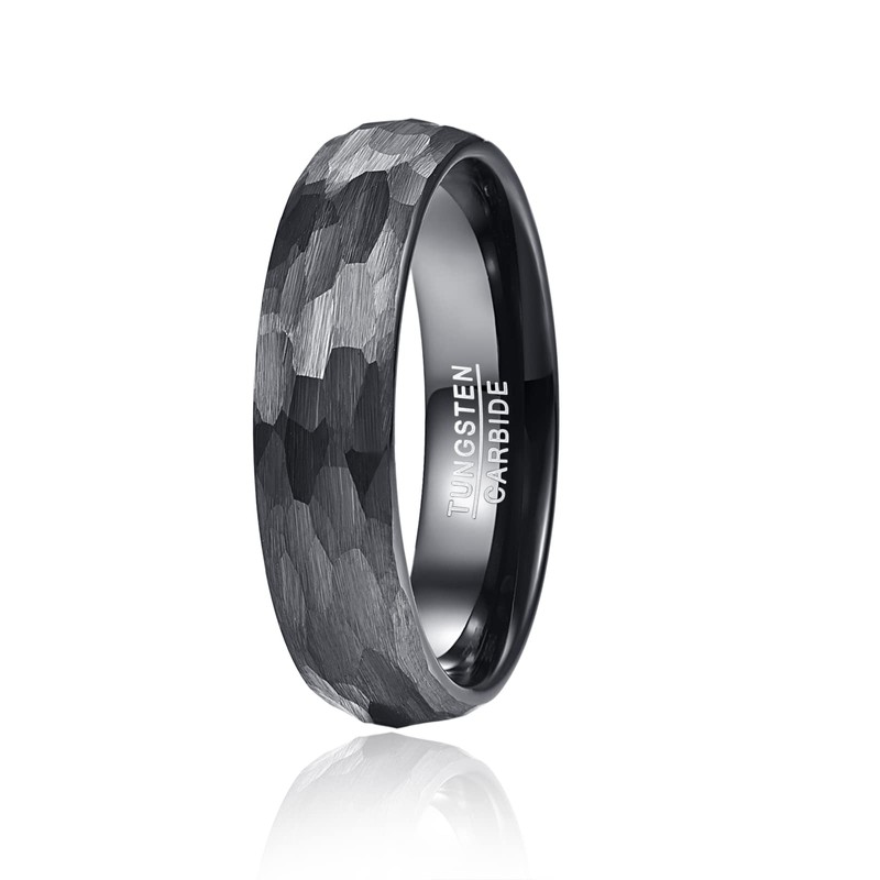 - High quality: hammered ring black made of tungsten carbide, scratch-resistant, chip resistant and strong and fits comfortably on the finger.