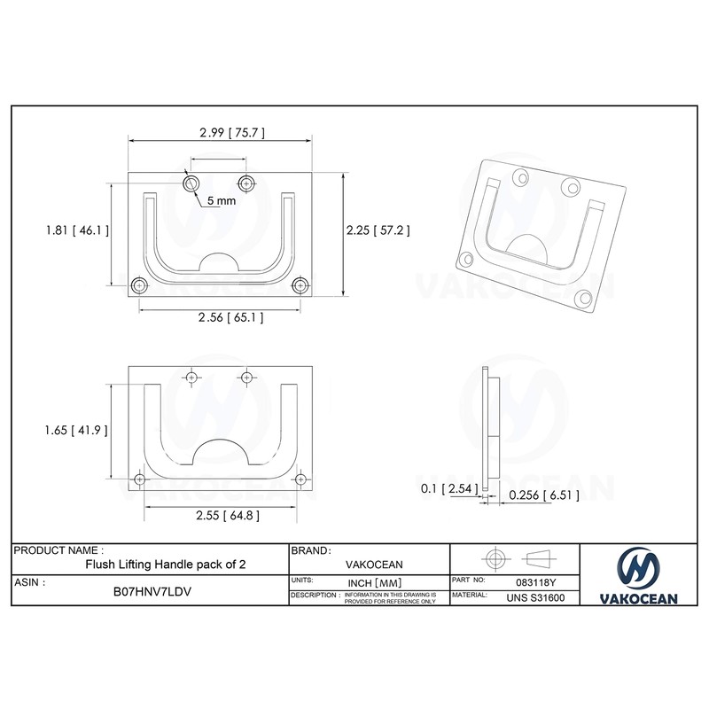 Vakocean 316 Stainless Steel Ring Pull Handle Pack of 2