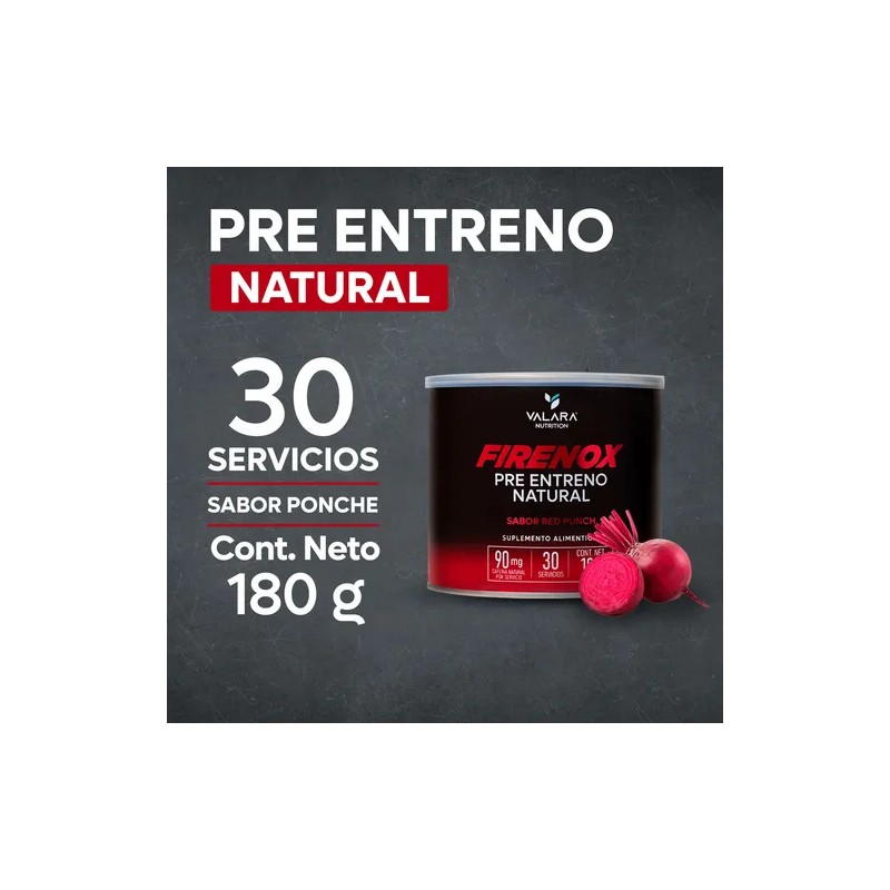 VALARA Firenox Red Punch - Pre-Entreno en Polvo 180 g - Suplemento Alimenticio Natural - Sabor Ponche - Beta Alanina - 30 Servicios - Gym, Entrenamiento
