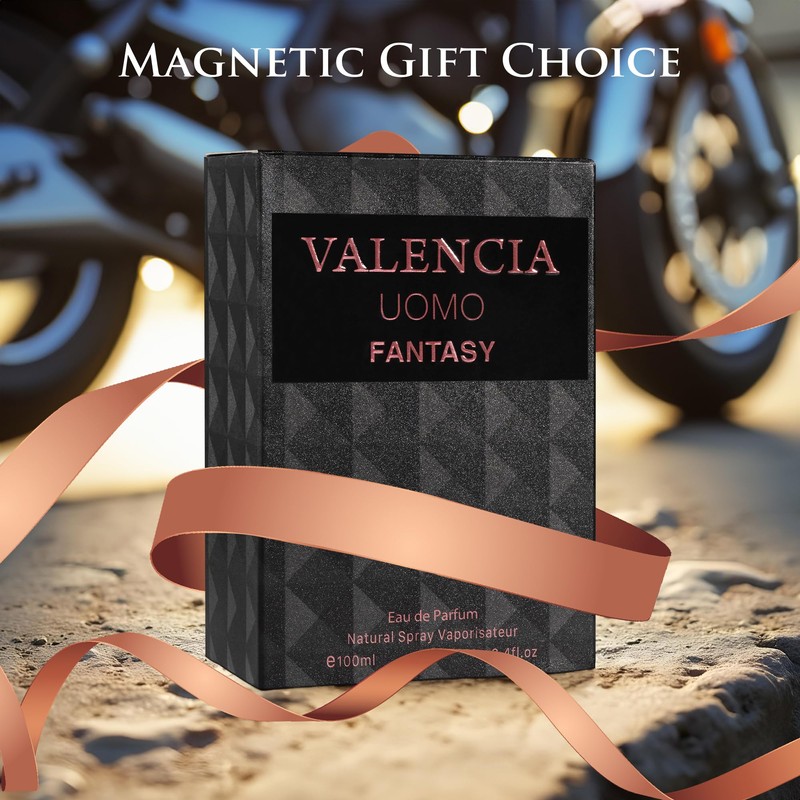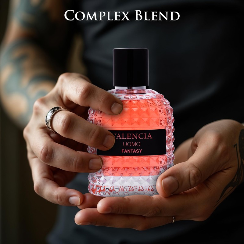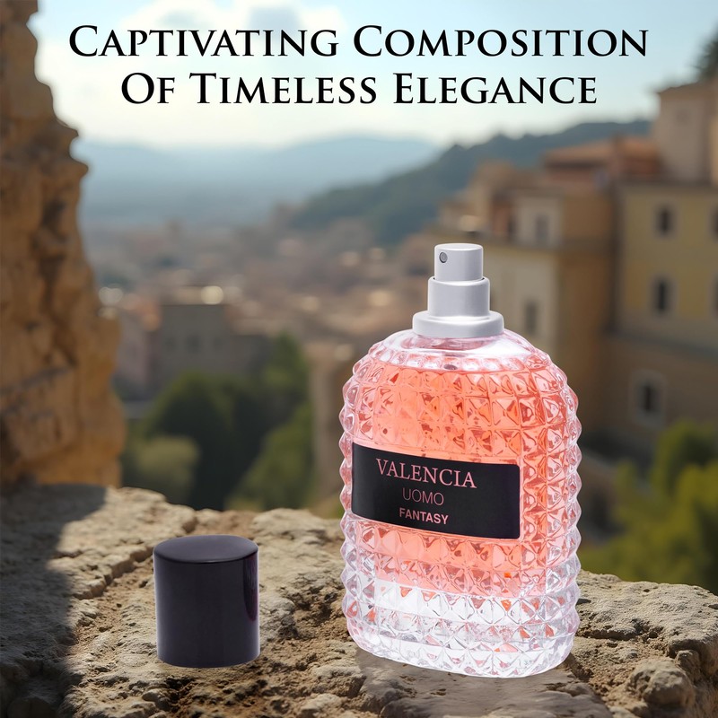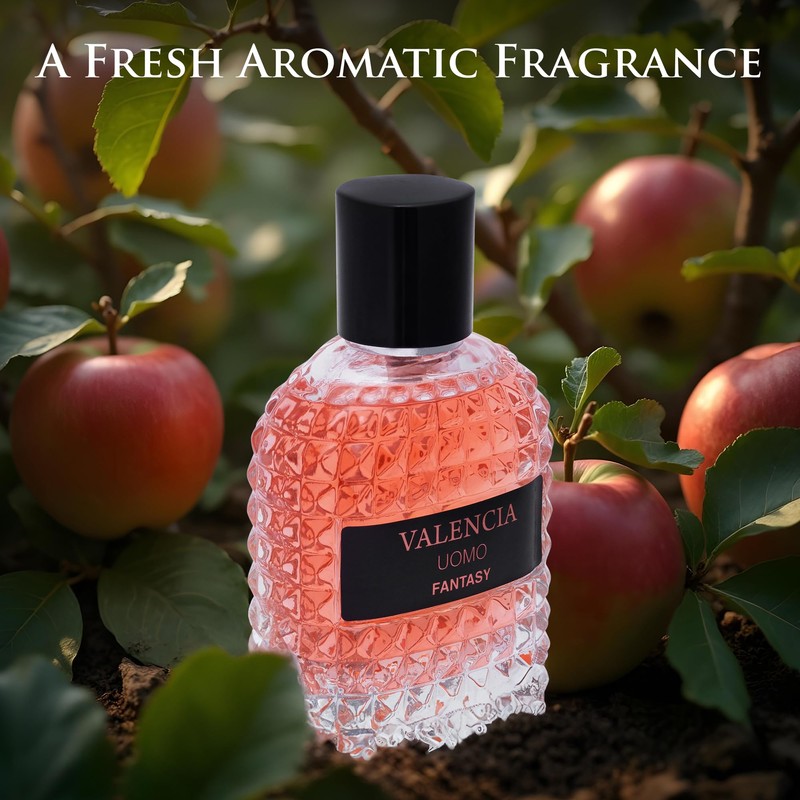 Valencia UOMO Fantasy Men EDP - Spicy & Woody Fragrance - Top Notes of Sweet Red Apple, Cardamom & Calabrian Bergamot - Base Scent of Warm Tobacco Leaf, Patchouli & Vetiver - Elegant 100ml Bottle