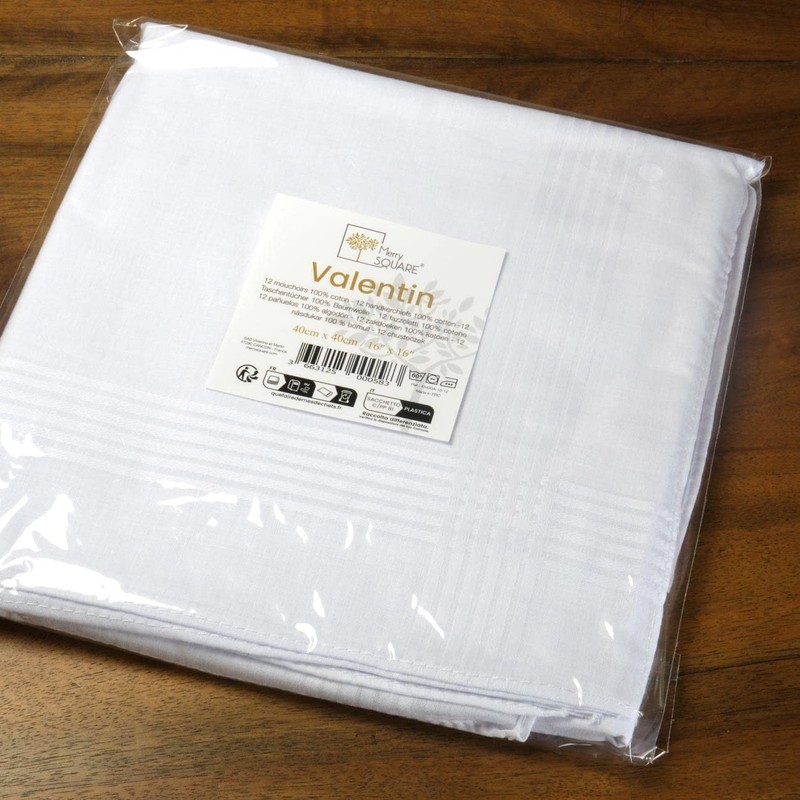 "Valentin" white handkerchiefs - 15" square - 12 units
