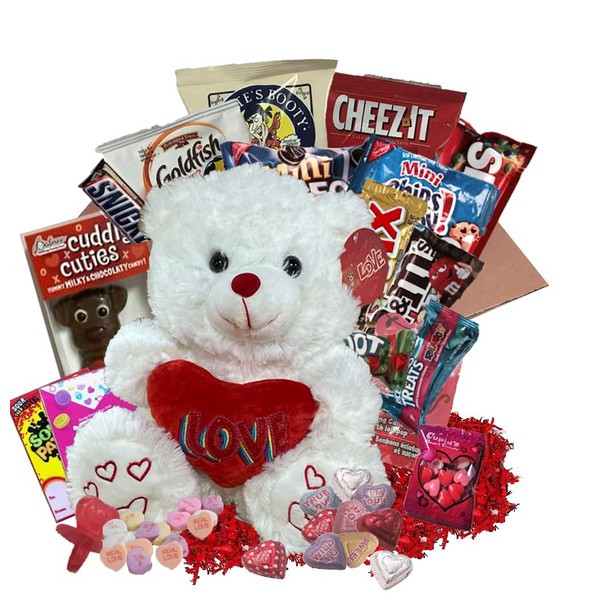 - The Kit contains 12 classic snack items plus a generous assortment of Valentine candies. It is packaged in a Valentine blend of crinkle shred.